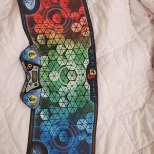 Colorful StackMat timer with geometric design. Features red, green, and blue sections.