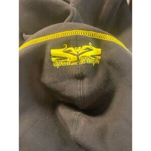 Speed & Strength Womens M Embroidered Hoodie Zip Killer Queen Thumb Holes. This is a B.A. piece. A thicker material inner & outer pockets. Zippered elastic in waist for some extra “ room” cincheable hood strings. Beautiful embroidered lettering both sleeves. My photos don’t do this piece justice ! Cold water washed and hung to dry. See photos for measurements