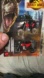 New in packaging Jurassic World domination speech striker motorbike. Red body with black seats in a gray cargo bag motorcycle