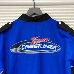 Speed Zone Race Gear Team Crestliner Boats Blue Black Button Up Shirt Size 2XL