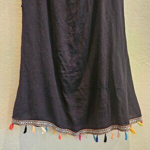 Speed control 2X lined gawzy Boho black dress cute colorful tassels on hem 2X