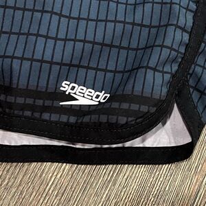 Speedo Anthracite Thread Print Swim Trunks Drawcord Elastic Waist Black Blue M