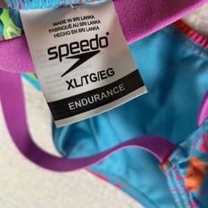 Speedo Bikini Top Women's XL Blue Pink Flamingo Dot Fixed Back Classic S8089.