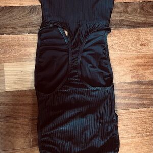 Stylish black ribbed one piece turtleneck swimsuit Features a front zipper and T back design for easy wear. Perfect for swimming or lounging.