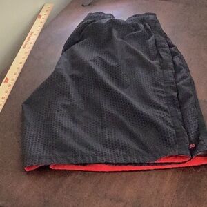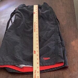 Stylish Speedo swim trunks. Black with red accents. Comfortable fit.