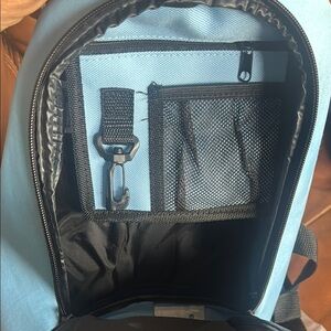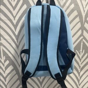 This Speedo backpack showcases a sleek modern design in blue and black, ideal for daily activities. Its medium size provides ample space for essentials, while the breathable material enhances comfort during use. Measures approximately 14x10. Includes 2 liter hydration bladder.