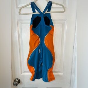 Experience top-tier performance with the Speedo One Piece Swimwear, featuring a striking blue and orange color scheme. Designed for competitive swimming, this suit combines a sleek racerback style with high-performance fabric for optimal speed and comfort in the water.