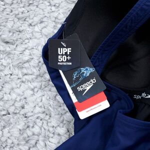Women's Speedo Conservative Ultraback One Piece swimsuit with princess seam in navy blue. Style number 7235031. New with tags, but has a slight residue where the hygenic liner was removed, as shown in photo. Women's size 16.