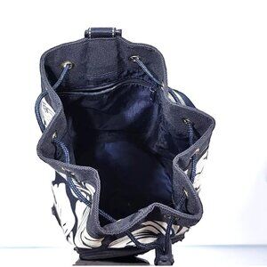 Speedo Drawstring Bucket Barrel Tote Bag Blue And White Floral Canvas