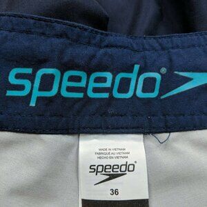 Speedo Electro Mist Swim Boardshorts. Blue with side stripes and drawstring. Size 36.