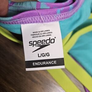 Speedo Endurance Bikini Top Strappy Fixed Back Mini Palms Purple Large