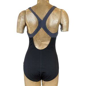 Speedo Endurance+ One Piece Swimsuit Black Zip Neck Sz 8 #293M