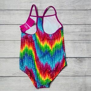Speedo Girls One Piece Swimsuit Size 12 Multicolor Tie Dye Rainbow NWT
