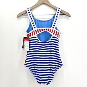 Speedo Girls One-Piece Swimsuit Size 14 Red White Blue Striped Patriotic NWT