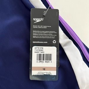 Speedo Girl's Size 12 Sweet Taro Purple & Blue / Multicolor One-Piece Infinity Splice Swimsuit NEW