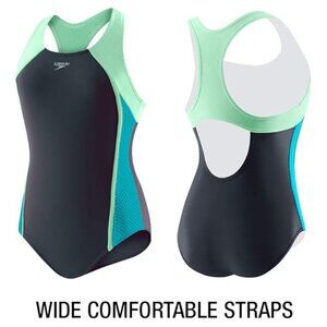 Speedo Girl's Swimsuit One Piece Mesh Splice Thick Strap Size 12
