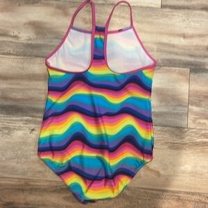 Speedo Girls XL Size 16 One Piece Rainbow Striped Swimsuit Swimming Uniform