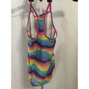 Speedo Girls Youth Swimsuit Racer Back Multi Color Rainbow One Piece Size Medium