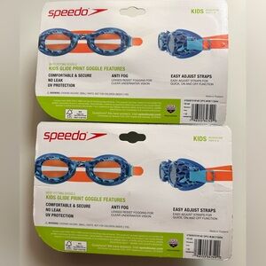 The set comes with two pairs of goggles, perfect for sharing with friends. Featuring Speedo's reliable quality and durability, these goggles are ideal for all water activities, from swimming lessons to pool parties. Get ready for splashing good times with these versatile and durable goggle sets from Speedo.