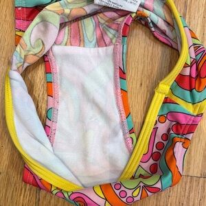 Colorful bikini with vibrant swirl design. Perfect for swimming adventures. 60’s vibe