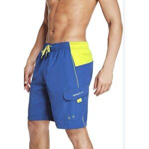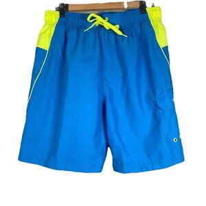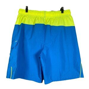 Speedo Mens Blue Neon Yellow Swim Trunks With 50 SPF Protection Size Large Beach