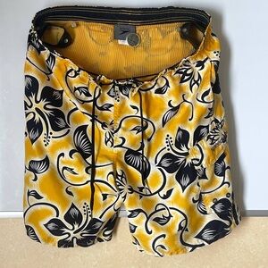 Speedo Mens Cargo Pocket Swim Bottom Trunks Small Yellow Floral Board Shorts