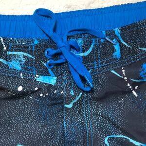Speedo Men's Floral Swim Trunks Blue Black XL Drawstring Waist Pockets Lined