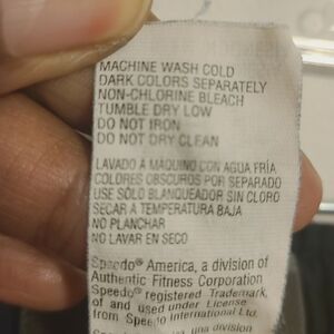 Men's red swimming trunks or shorts by Speedo, size small. Lightweight shorts have internal draw cords, front slant pockets and back pocket with a velcro closure. Small darts on the sides. Inside mesh or net lining. 100% polyester. Elastic waistband. Excellent pre-owned condition overall; one of drawstrings at waist is unraveled. Please see close-up pictures for more details.