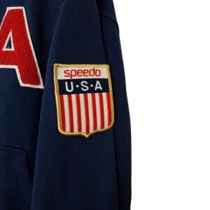 Speedo Mens Urban Graphic USA Fleece Lined Hoodie Navy Red M Stay cozy and stylish with the Speedo Urban Graphic Fleece Lined Hoodie. Made from our softest Arctic Soft fleece, this hoodie offers maximum comfort and warmth. Perfect for chilly days and casual outings.-USA Appliques, Kangaroo Pocket, Drawstring Hood Brand: Speedo MFG: 15332 MRSP: $98.00 Mens or Unisex Adult Size: M Measurements: Armpit to Armpit 25" Length Shoulder to Hem 28" Condition: Good Fabric: Cotton Blend Wash Instructions: Machine Color: Blue/Red...Multi Fast Shipping