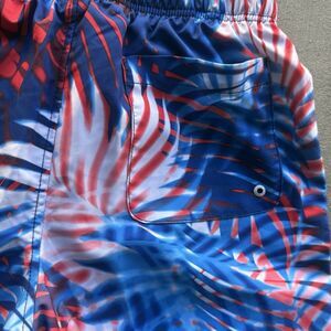 Speedo Men's Volley Ghost Palm Swim Trunk - Blue/White/Red Size Medium Excellent