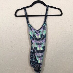 Speedo “Mosaic Maze” Relay Back Power Flex One-Piece Swimsuit size 10