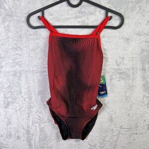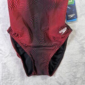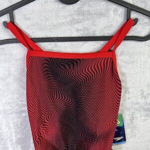 Speedo NWT One Piece Swimsuit Women's 6 Red Black Riff Flyback Swimming Racing