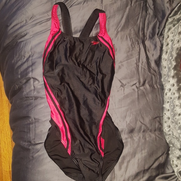 Black and red with sport detailing. Literally worn for half a semester (around 5 weeks, twice a week for an hour). Great condition. Note: Speedos fit on the smaller size, but with obvious reasons (competitive swimming).