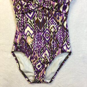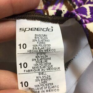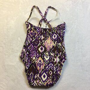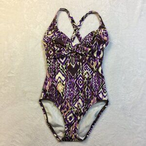 Speedo One Piece Swimsuit Size 10 Womans Purple Abstract Criss Cross Back Padded