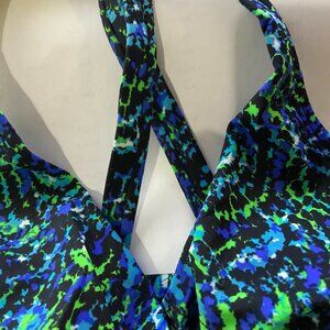 Speedo One-Piece Swimsuit 8 blue green abstract medium coverage