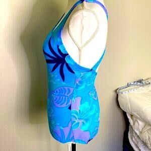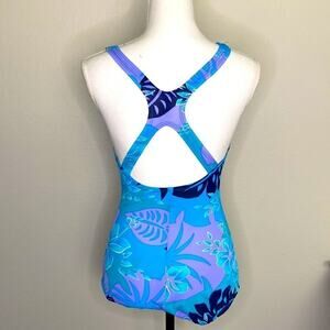 Speedo One Piece Women’s Swimsuit Blue Floral and Leaf Design Size 8 see Video