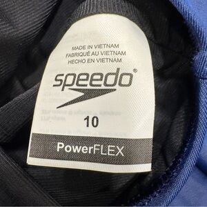 BRAND NEW with tags. Women’s speedo Power Flex one piece bathing suit. Navy blue, racer back, logo, build in bra. Size 10. See photos for measurements. MSRP $68