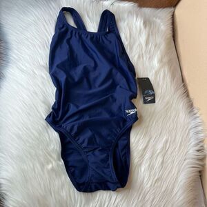 NWT. Speedo PowerFlex Eco Navy One Piece Swimsuit Size 8/34