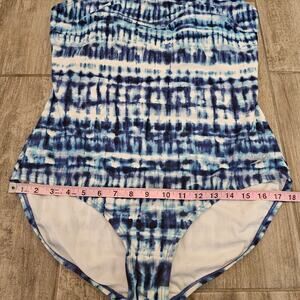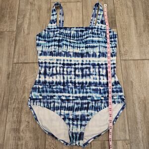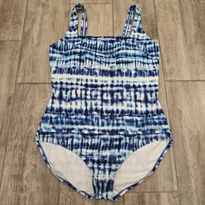 Speedo Printed Square Neck One Piece Swimsuit Women’s XL Blue Tummy Control