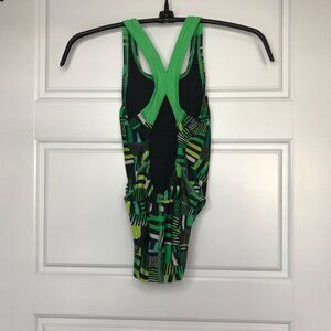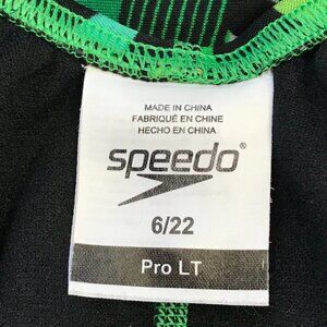 Speedo Pro LT Swimsuit Trippy Stripe Drop Back Youth Girls Size 6/22 Black Green