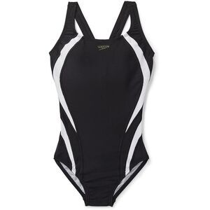 Speedo Active Quantum Fusion Splice One Piece Swimsuit (7723950). Slice through the water like a seal in this sleek one-piece swimsuit. Made of nylon, polyester, and Creora Highclo spandex. Supportive wireless, seamless HydroBra is lined with soft, breathable knit fabric with pockets for removable padding, included. Fabric taping along bottom of cup acts like an underwire for shape and a little extra support. Sewn-on elastic underband below bust helps stabilize fit. Scoop neckline offers full coverage and stays put with covered elastic at edge. Block the Burn 50+ UPF helps protect your skin, blocking up to 98% of harmful rays.