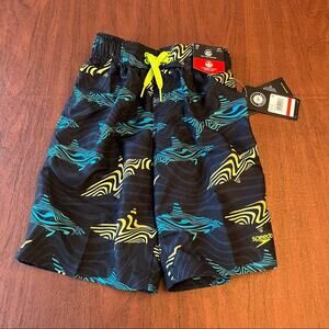 Speedo Shark Swim Shorts Black Blue Boys XS