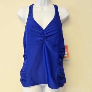 Speedo Shirred Racerback Tankini Swim Top Bora Bora Blue 14