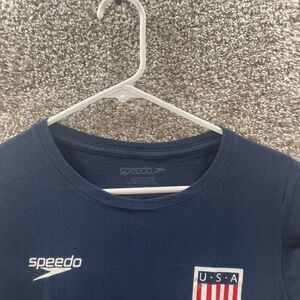 Speedo Shirt Womens Large Blue USA Swimming Kate Ziegler Cotton Casual Logo Crew