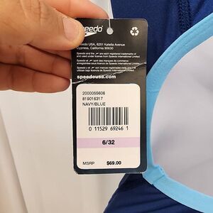 Speedo Size 6 Women's Swimsuit One Piece Endurance+ Flyback Solid Adult Navy/Blue