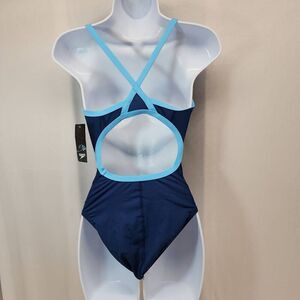 Speedo Size 6 Women's Swimsuit One Piece Endurance+ Flyback Solid Adult Navy/Blu