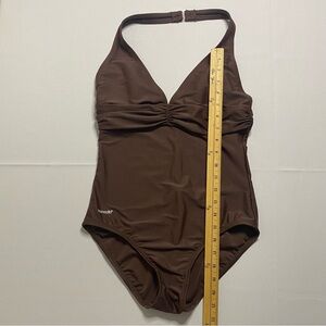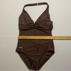 Speedo Size 8 Women's Chocolate Brown Halter Neck One-Piece Swimsuit