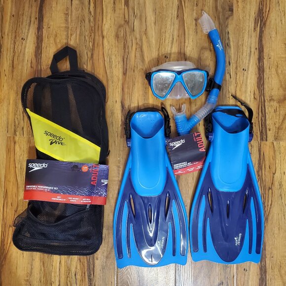 Speedo Snorkel Set Mask, Snorkel, & Fin Set Adult S/M Dive Water Swimming