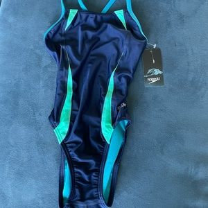 Speedo Solid Splice Flipback One-Piece Blue Aqua NWT size 22