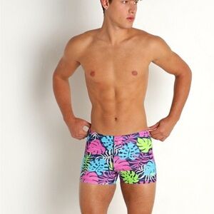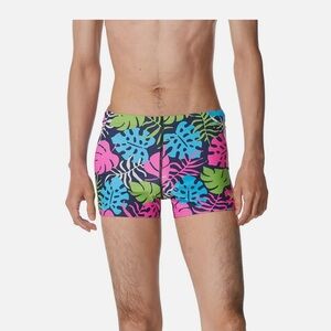 Speedo Square leg leaf print fitted swim trunk men's
